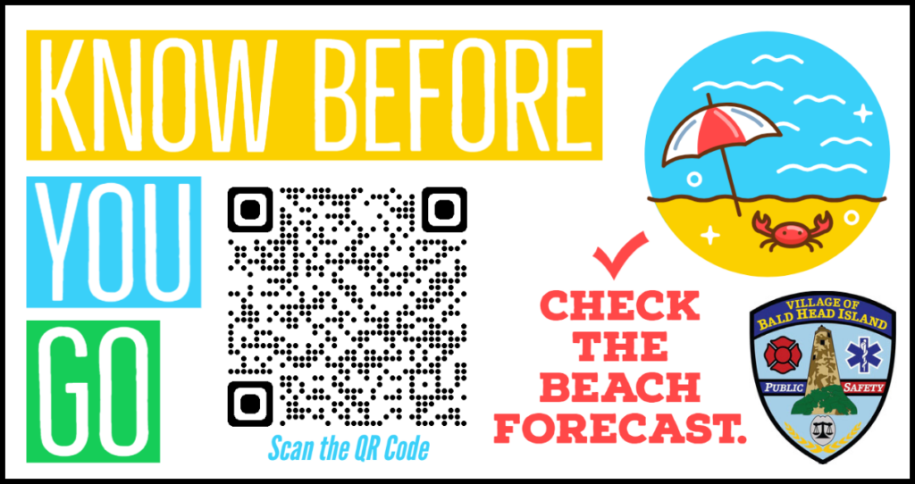 For the last few years, the Village has been advising beachgoers to “KNOW BEFORE YOU GO.” This means that those who are headed to the beach should know the weather conditions, especially if they are planning on getting in the water.  The Village’s website includes dedicated webpages for beach safety, which include a beach forecast page with the NWS Wilmington rip current risk information in real time. East Beach and South Beach often have different risk levels. You can view the Village’s beach forecast webpage HERE.