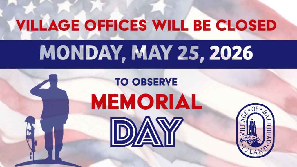 Offices closed – Village offices will be closed on Monday, May 25, 2026, in observance of Memorial Day.  This includes the Island Package Center & Post Office and Public Safety administration.  Please call 911 if you need a Public Safety Officer to come to you.
